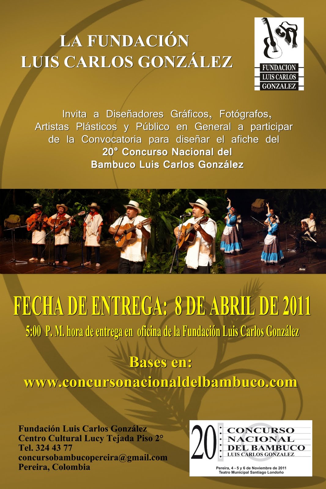 La Fundación Luis Carlos González reitera su invitación a los diseñadores gráficos, publicistas, artistas plásticos, fotógrafos y público en general, para que participen en la convocatoria que busca el afiche imagen del 20° Concurso Nacional del Bambuco Luis Carlos González.